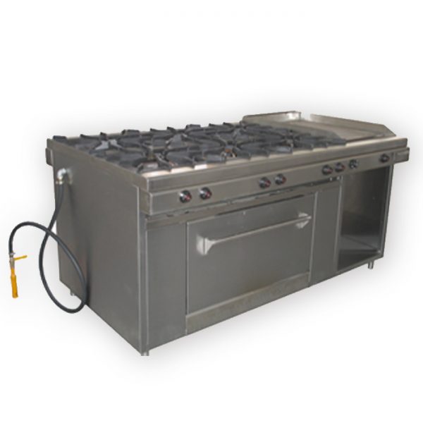 COCINA INDUSTRIAL DE 06 HORNILLAS CENTRAL 01 HORNO Y PLANCHA